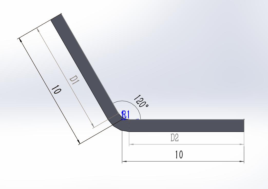 折彎區(qū)域(圖中表示為淡黃色的區(qū)域)就是理論上在折彎過程中發(fā)生變形的區(qū)域。簡而言之,為確定展開零件的幾何尺寸,讓我們按以下步驟思考: